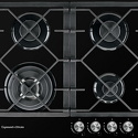 Поверхность: варочная панель • Тип поверхности: газовая • Рабочая поверхность: закаленное стекло • Число конфорок: 4 • Установка: независимая • Газовые конфорки: всего - 4 (1 конфорка "Тройная корона") • Газ-контроль конфорок: есть • Тип управления: механическое • Переключатели: поворотные • Электроподжиг: есть, автоматический • Размеры: 584x510x50 мм • Цвет: панель - черный